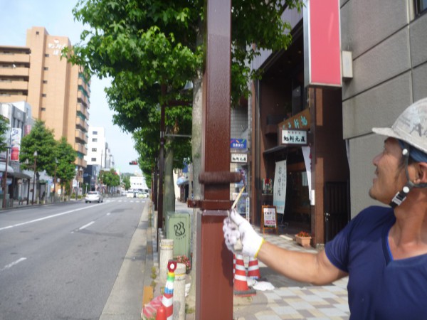 岡崎市の東康生通り商店街様からのご依頼で街灯の塗り替え工事を